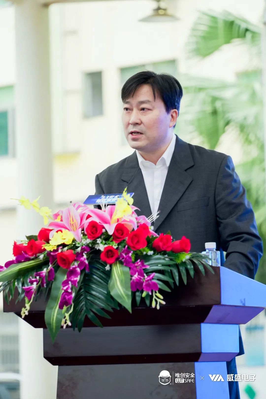 在发布会上,中粮(福安)/机器人科技园项目总经理罗锦宏先生带着期许,在新品发布会上献上了祝福:“唯创安全进驻科技园已6年时间,作为一家坚守在工车车辆安全行业20多年的创新型企业,这份执着与初心令人敬佩,如今已然成长,成为行业业中的佼佼者,这离不开唯创人的艰苦奋斗,也离不开党与政府对安全生产的高度重视。唯创安全与威盛电子召集众多企业、协会、媒体朋友共聚此处,交流工程机械工业车辆领域的安全规范,并发布新品,以科技为己力,安全生产,这是一件极具意义的事情,唯创安全以实际行动诠释企业的责任与担当。”