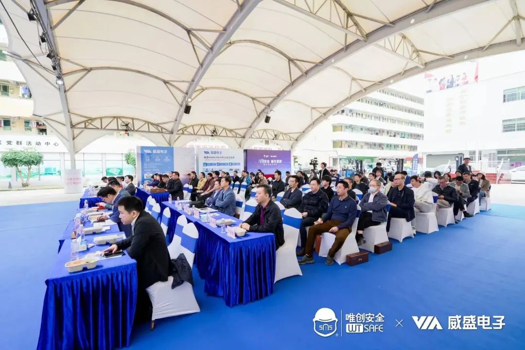 参加本次新品发布会的嘉宾有中国工程机械工业协会工业车辆分会秘书长张洁女士、深圳唯创安全技术有限公司总经理李保平先生、威盛电子深圳分公司总经理黄智炜先生、南通市流动式起重机械协会会长邹陆云女士、深圳宝安稔田社区领导、中粮(福安)机器人科技园代表及唯创安全与威盛电子合作伙伴、企业代表欢聚一堂,共同见证这一历史性时刻,齐心协力、共同启动了叉车安全监控装置新品发布会。
