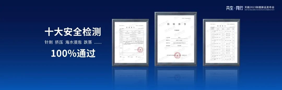 对于消费者普遍关注的安全问题,天钠T1具有本征安全性,并通过了针刺、挤压、海水浸泡、跌落等十大安全性能测试,耐过充、耐过放、耐热失控表现处于行业领先水平。