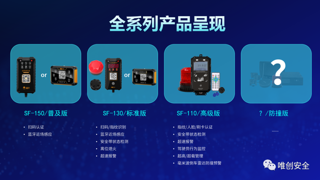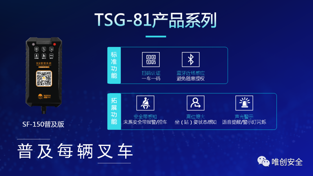 唯创安全积极响应,投入人力物力,研发新产品,极大地丰富了叉车安全监控装置这一系列的产品。该系列产品具备司机权限管理、离位熄火、安全带感知、速度管理等功能,具备性价比高、适配性强、安装方便等优势。