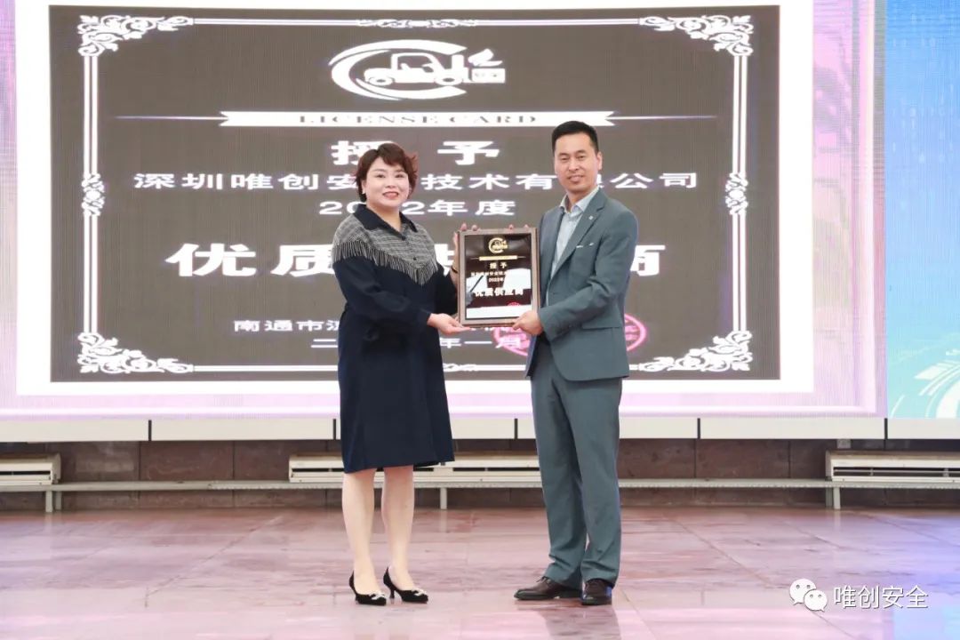 南通市流动式起重机械协会会长邹陆云女士也出席了本次新品发布会,并为唯创安全颁发优质供应商荣誉奖牌。邹会长表示通过建立长期、紧密的全面合作关系,有效实现资源共享、优势互补,感谢唯创安全为叉车安全保驾护航。