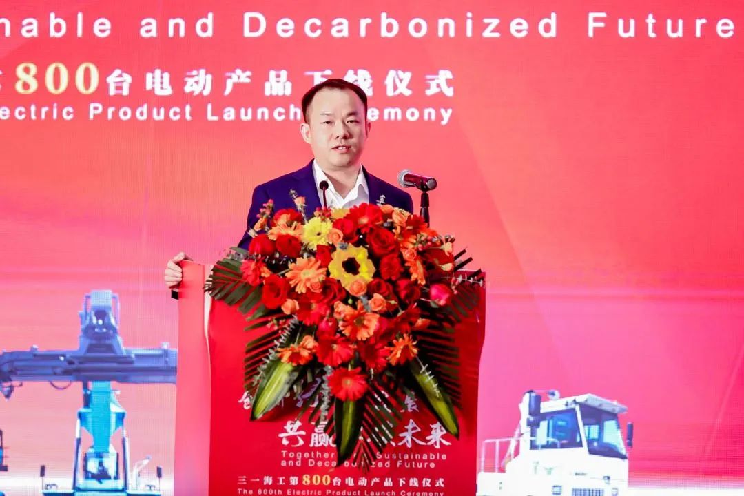 三一集团副总裁、三一海工董事长伏卫忠在发布仪式现场致辞,他表示:三一正大力实施电动化、数智化、国际化三大高质量发展战略,电动化对三一而言是宁可试错、不可错过的机遇。