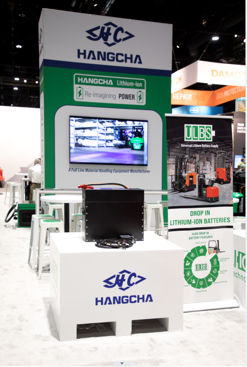 展会上还首次展出了杭叉的通用锂电池解决方案(简称ULBS),即铅酸改锂方案。这是一种新型的解决方案,最终用户可以快速地将其任何品牌的铅酸叉车转换为锂电叉车,充分享受杭叉成熟的锂电技术带来的诸如电池免维护,充电快,续航长的红利,可谓是以“小成本”撬动“大成效”。