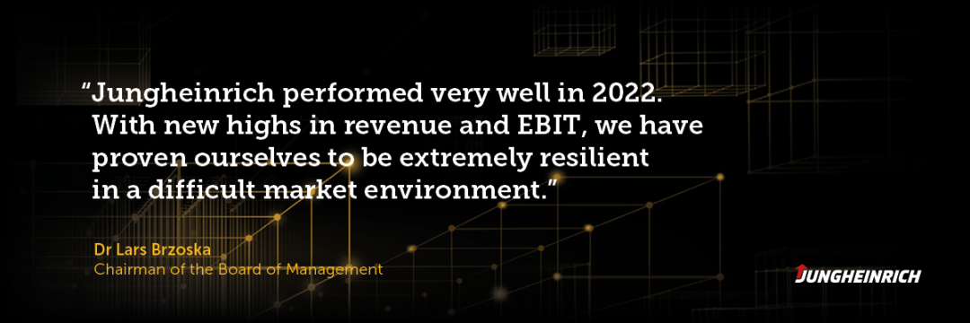 汉堡,2023 年3月31 日——对于永恒力公司而言,2022年受俄乌战争影响,全球经济增长显著放缓。在极具挑战性的全球政治和宏观经济环境中,集团营业收入同比增长12%,达到创纪录的 47.63 亿欧元。尤其新车业务成为了集团销售强劲增长的主要驱动因素。原因在于新车带来更高的营业收入以及自动化系统业务的强劲增长。息税前利润增长 7%,达到 3.86 亿欧元,而息税前利润率(EBIT ROS)达到8.1%,息税前利润和息税前利润率甚至高于当年的预测范围。