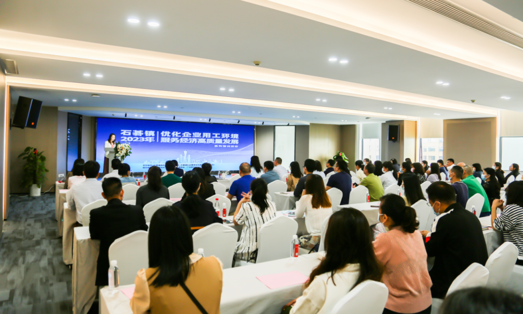 在“五一”国际劳动节来临之际,为大力弘扬劳动精神,持续推动企业构建高质量、更加和谐劳动关系,石碁镇开展“优化企业用工环境服务经济高质量发展”系列宣讲活动,把宣法答疑服务直达送入企业,精准指引企业提升新业态下用工管理水平。4 月12 日上午,由石碁镇政府主办的首场专题培训班在广州佛朗斯股份有限公司总部圆满举行。石碁镇副镇长卢可、石碁镇社会事务综合服务中心(劳动)有关负责人、佛朗斯股份人力资源中心总监侯泽燕及石碁镇商会会员企业近140 人参加培训。