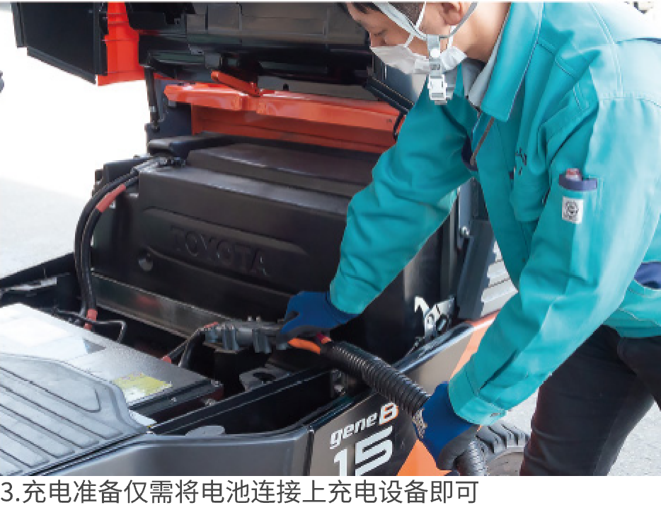 作业间歇时间的机会充电,充电30分钟可以使用3小时左右,搭配丰田AC交流动力系统,满足富士通将军工厂需要24小时运转的需求。