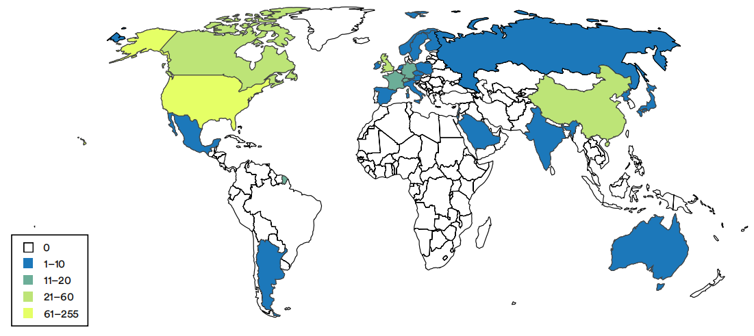 2002-22年按国家划分的机器学习系统作者数量(总和)