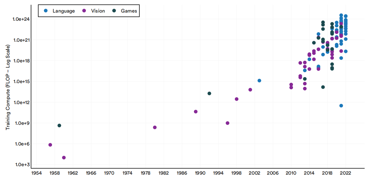 1950-22年重要机器学习系统的分域训练计算(FLOP)
