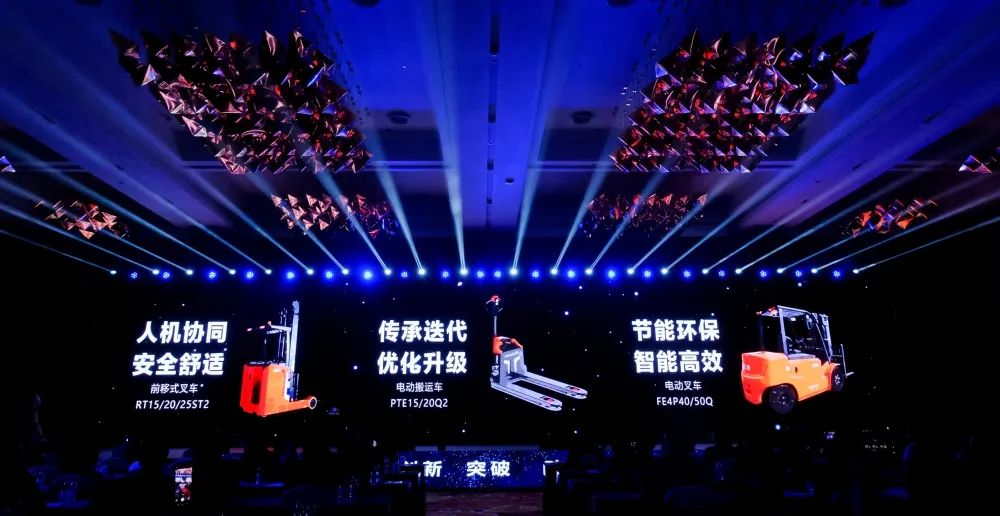 创新是诺力股份深入骨髓的企业文化基因,并把2023年定义为“全域创新年”。此次盛会上,隆重推出了三款无论从外观、性能、操作体验等方面领先于行业水平的全新产品:人机协同、安全舒适的站架式前移车RT15/20/25ST2,传承迭代、优化升级的凌动二代PTE15Q2-A/PTE15Q2-B,节能环保、智能高效的四支点平衡重锂电叉车FE4P40-50Q,助力“油换电”政策的顺利推进。