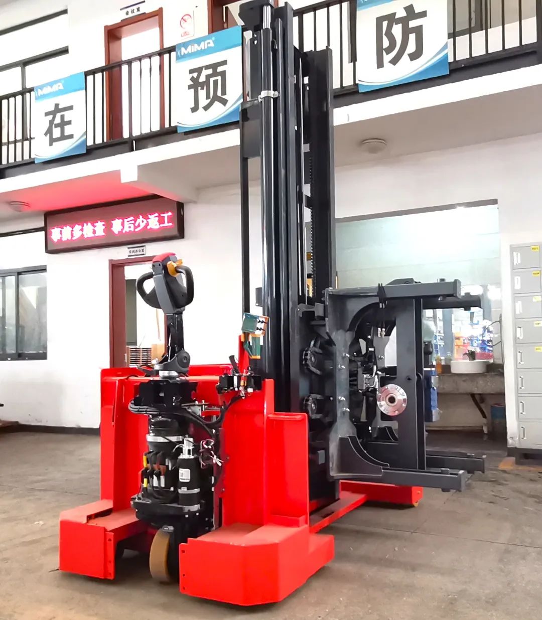 在办公室访谈中,任总介绍,搬易通自1994年成立之初就扎根在专业化物料搬运设备细分领域,经过二十多年的发展,如今旗下全系列产品在各个领域均享有一定知名度,特别是在“窄巷道密集仓储、长物料搬运、大吨位搬运和AGV叉车本体”领域深受客户信赖,市场份额遥遥领先。MiMA(米玛)已成为窄通道三向堆垛车、长物料搬运领域全向四向叉车、AGV叉车本体中国市场占有率领先的中国品牌。近年来,公司进一步加大对海外市场的开拓,积极在海外市场进行宣传和布局营销网络,已取得很好的成效。