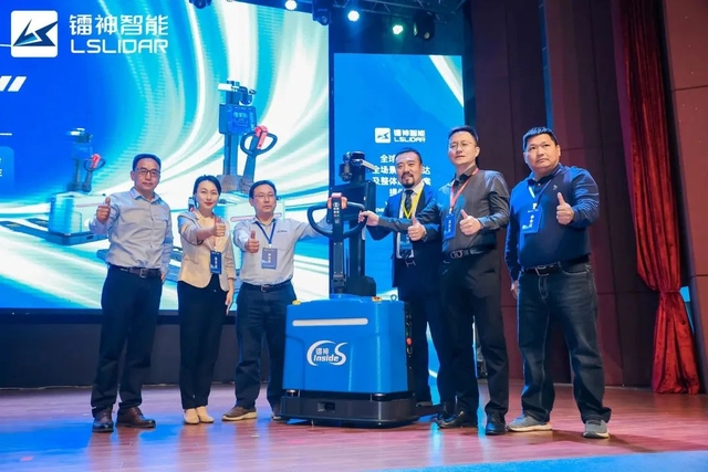 图:2023年3月,镭神智能发布了全球首款自主研发的基于多线激光雷达3D SLAM自然定位导航无人叉车