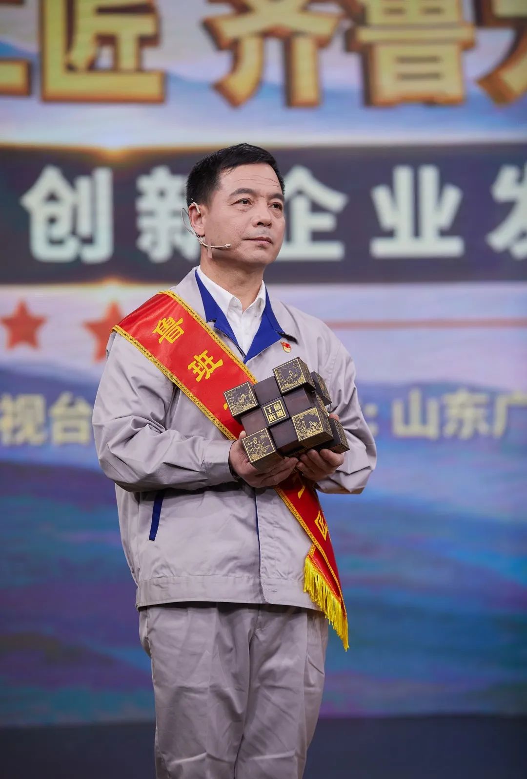 逐梦新征程,匠心向未来。4月20日晚,由山东省总工会、山东广播电视台联合举行的2022鲁班首席工匠、齐鲁大工匠颁奖典礼暨山东省全员创新企业发布仪式通过山东电视新闻频道、闪电新闻客户端、齐鲁工惠APP、山东工会微信视频号等媒体平台同步播出。全国劳动模范、国家级技能大师工作室领办人、山东临工维修电工、高级技师邱峰在仪式上被授予首届“鲁班首席工匠”荣誉称号。