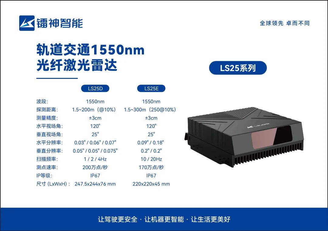镭神智能赋能轨道交通所用激光雷达拥有1550nm及905nm两种光源配置可选,均采用车规标准设计,且在尺寸、功耗、功能安全、成本等进行了全面整合优化,通过一系列严苛测试,可采用定点式安装或车载式安装两种安装方案。