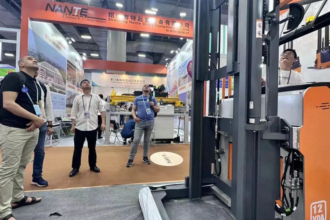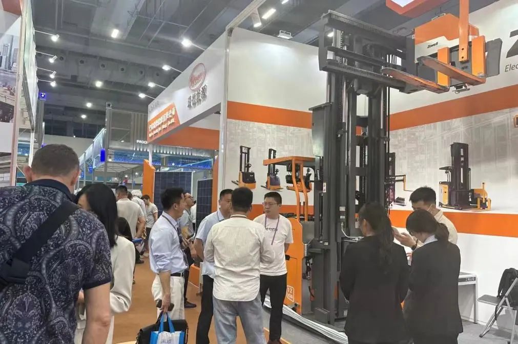 4.15-4.19,卓一智能叉车携窄巷道系列适用场景最为广泛的VNA人下行三向电动叉车亮相第一期展会现场。