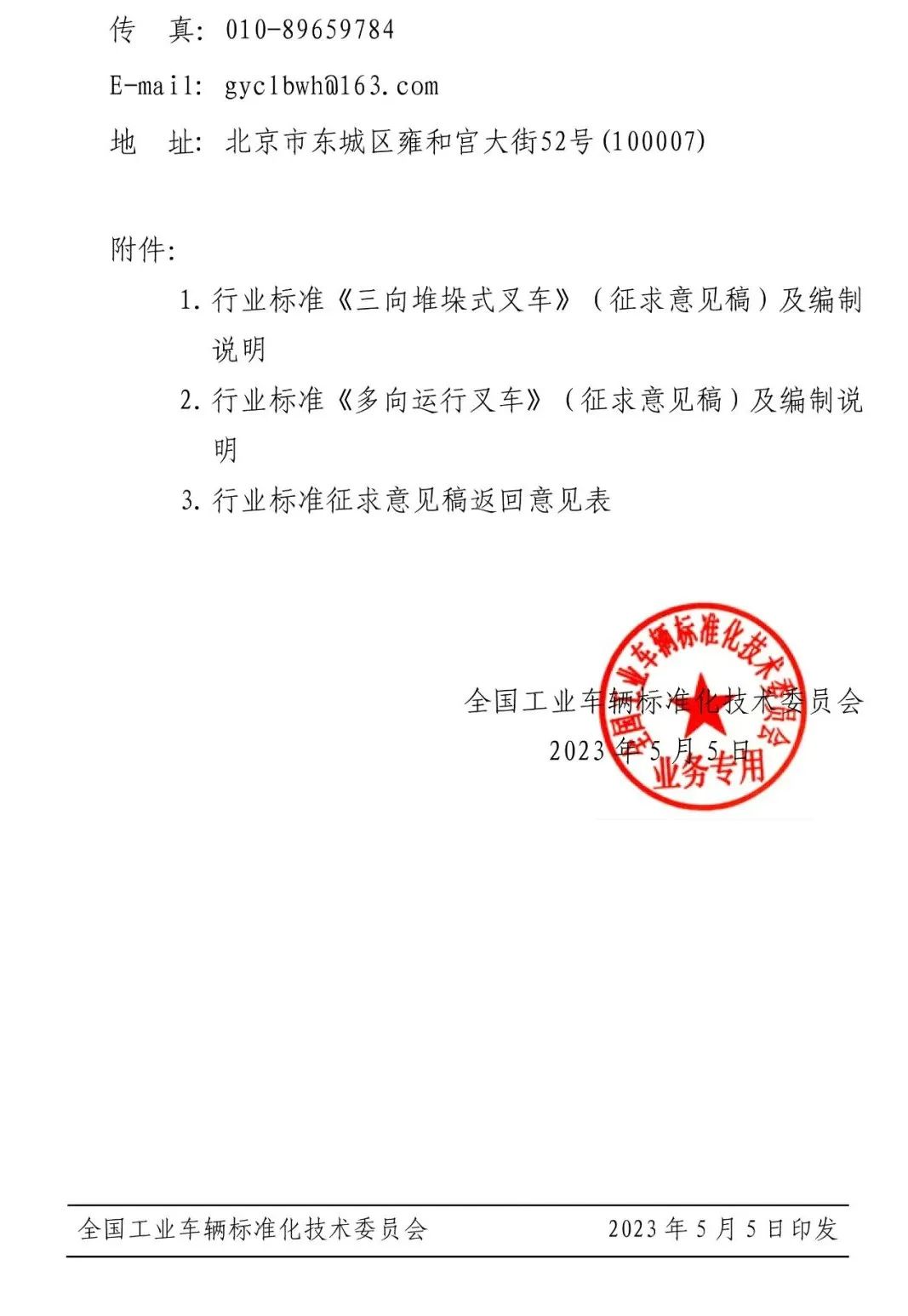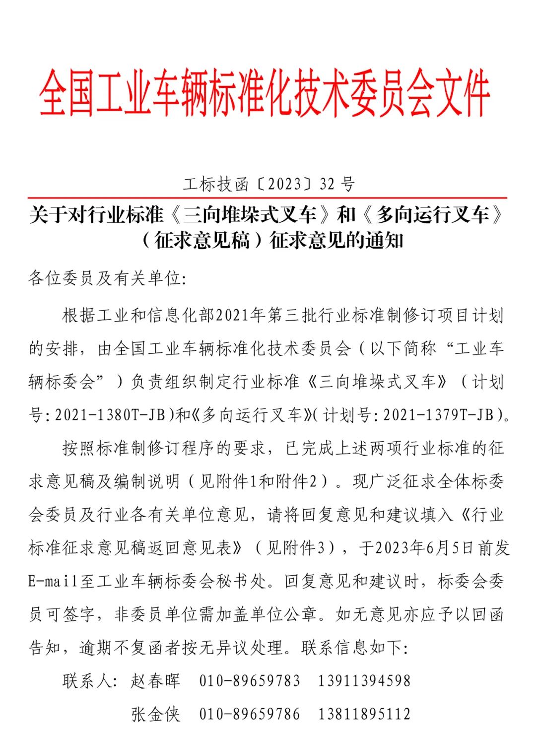关于对行业标准《三向堆垛式叉车》和《多向运行叉车》(征求意见稿)征求意见的通知