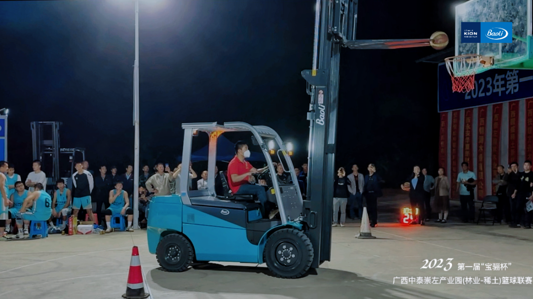更令人惊喜的是,宝骊电动叉车也球场秀绝活,绕桩、投篮一气呵成,将“电车专家”快、准、稳的性能优势表现得淋漓尽致,引得现场欢呼不断。过硬的产品让观众们真切体验到了宝骊电车敢拼敢抢的底气和发展潜力。