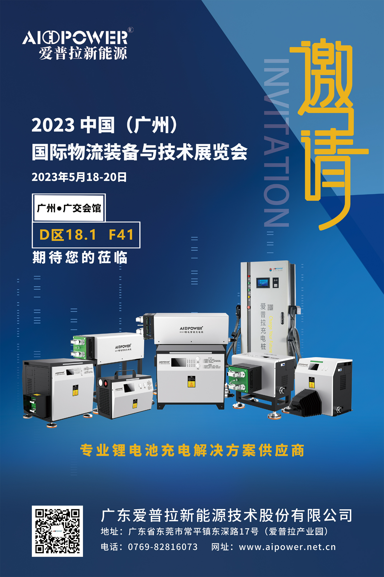 2023年5月18-20日,2023中国(广州)国际物流装备与技术展览会将于广州广交会馆D区隆重举行。届时,爱普拉新能源将携创新锂电池充电解决方案在D区18.1展馆F41号展位与大家相聚!