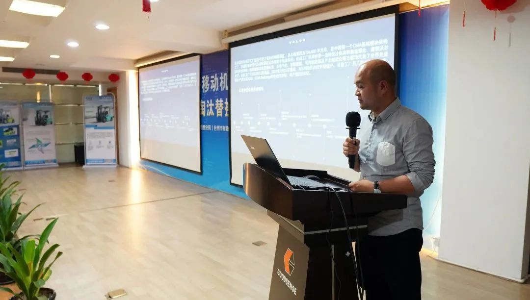 为推广应用新能源叉车,助力企业绿色低碳高质量发展,本次会议邀请全市叉车使用企业代表和新能源叉车生产销售企业参加,市生态环境局党组成员、副局长梁晓永出席会议并讲话,市经济和信息化局、市财政局、市商务局、市市场监督管理局负责人参加会议。