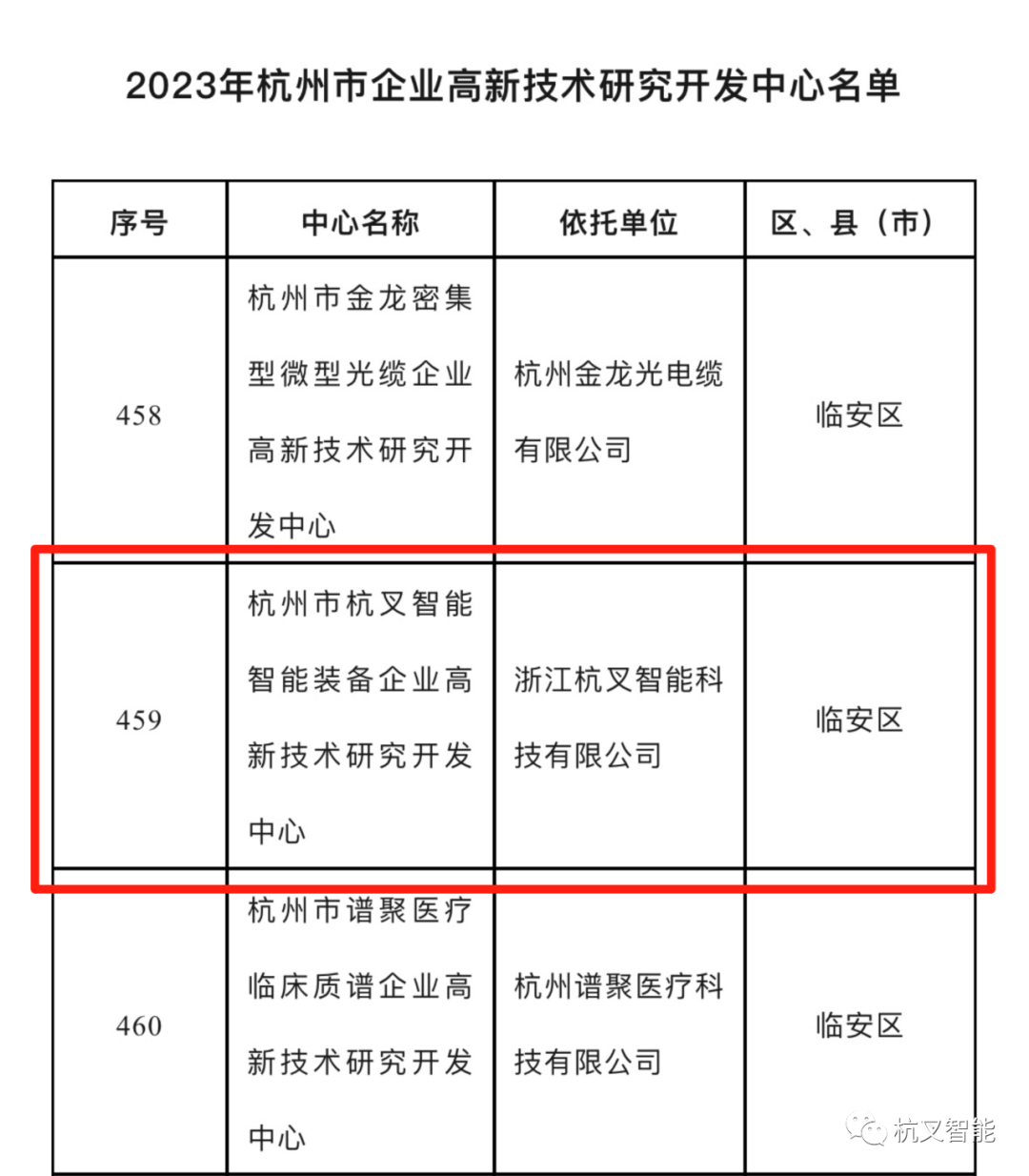 杭州市科学技术局公布2023年杭州市企业高新技术研究开发中心名单,杭叉智能的智能装备企业高新技术研究开发中心符合建设条件,成功上榜!