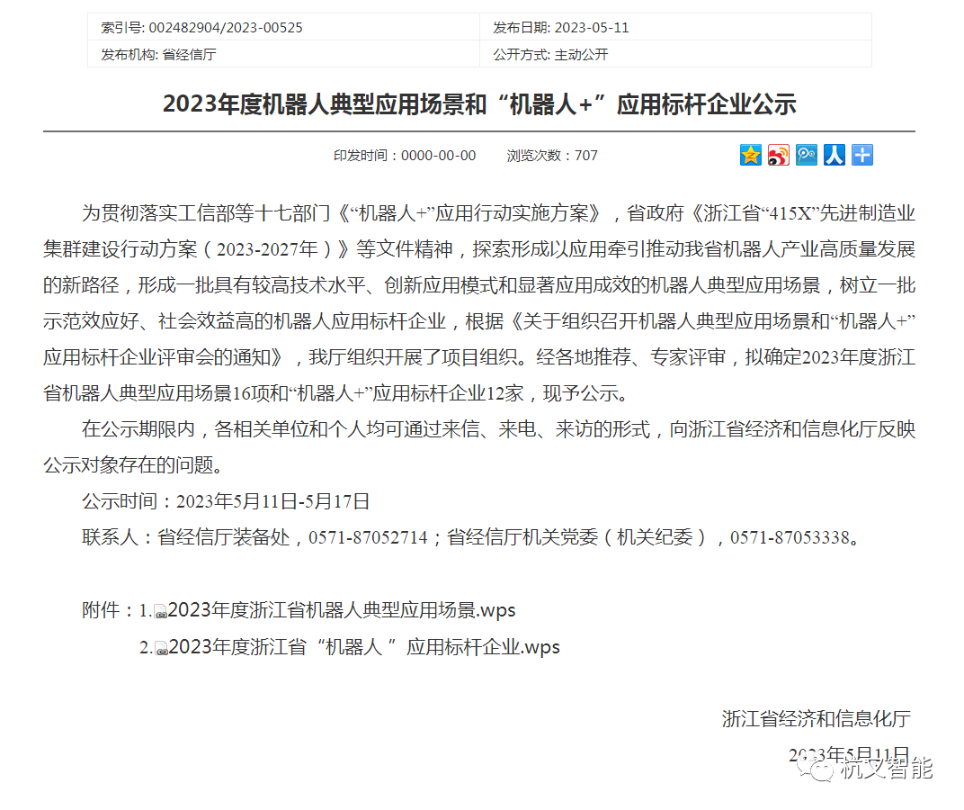 浙江省经济和信息化厅确定并公示了16项2023年度浙江省机器人典型应用场景和12家“机器人+”应用标杆企业,杭叉智能未来工厂自动化配送及仓储解决方案入选机器人典型应用场景名单。
