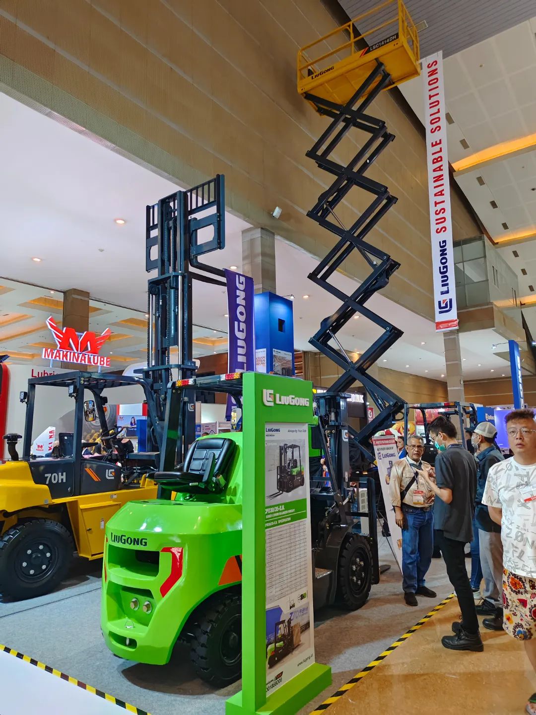 本次展会,柳工参展面积最大,布展规模和专业水平与国际一线品牌相当。柳工印尼公司以“全面解决方案”为主题,展出柳工物料搬运代表产品,包含平衡重式内燃叉车、平衡重式锂电电动叉车、仓储前移车以及曲臂式高空作业平台等。展会期间客户络绎不绝,四台参展样机在展会开始就已被客户预定,展会结束后立即交付到客户手中。