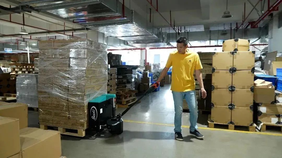 原材料及成品的厂内流转过程,大都采用人力托盘搬运车,面对较重货物时,搬运费时费力;