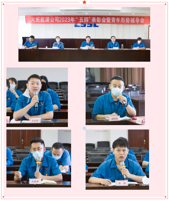 6月2日,火炬能源公司召开2023年“五四”表彰会暨青年形势辅导会,深入学习贯彻习近平新时代中国特色社会主义思想,表彰2022年度团内先进集体和个人,集中开展青年形势任务教育,激励公司广大团员青年在新征程上勇挑重担、团结奋斗,为实现全年各项目标任务、推动公司高质量发展贡献青春力量。公司党委书记、董事长王怀宇参加会议并作专题团课暨形势辅导,党委副书记、总经理李玉柱参加会议并讲话,党委副书记、纪委书记马蛟宣读表彰决定。