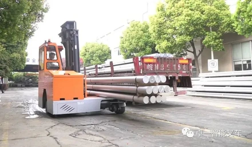 作为国内首台适用于5吨重型长物料搬运的多向前移式叉车,卓一“蟹力士”获得了广泛关注,也在国内某铝型材企业进行了实际应用。