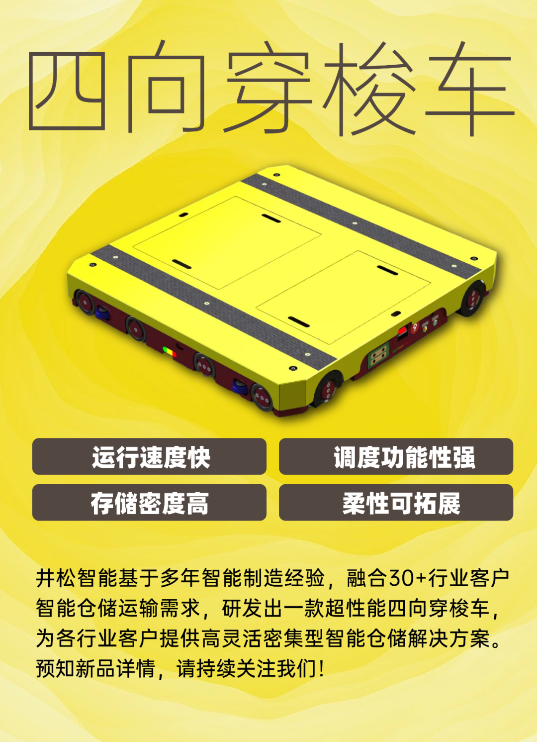 井松成立于2007年,是国内领先的智能物流系统集成商与物流装备制造商,主要从事自动化立体仓库及企业内物料输送系统等软硬件系统的研究开发、规划设计、安装实施与技术服务等。