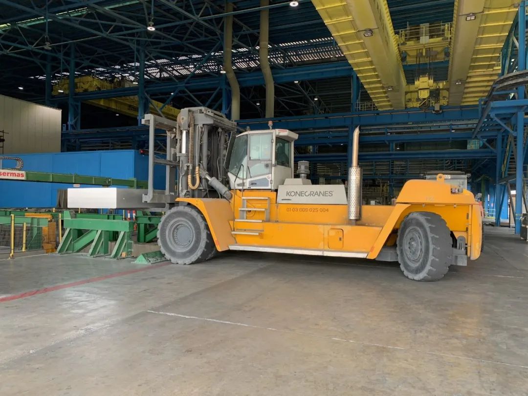 工业铝制品生产对于生产和搬运都有严苛的要求,因此,巴林铝业(ALBA)很早就购置了两台科尼50吨重型叉车(SMV 50-1200C),专门用于30吨铝板的转运:从生产区搬运到存储区,然后再运送到仓库。