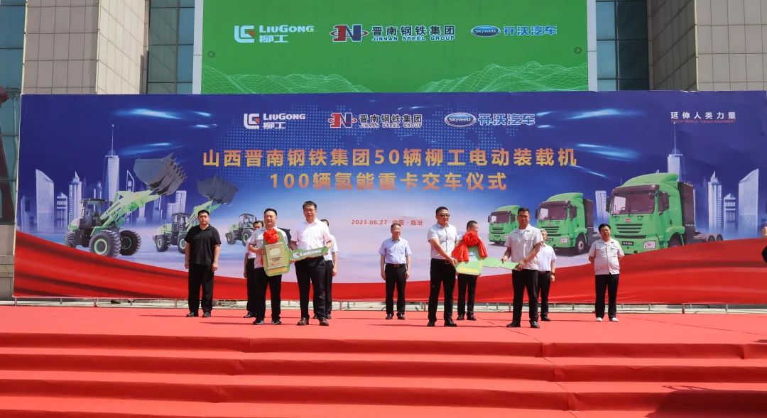 6月27日,山西省临汾市曲沃县,50台柳工856HEMAX电动装载机整齐列队,批量交付山西晋南钢铁集团有限公司(以下简称:晋南钢铁集团),为该公司产业转型升级、低碳发展注入“绿色动力”。