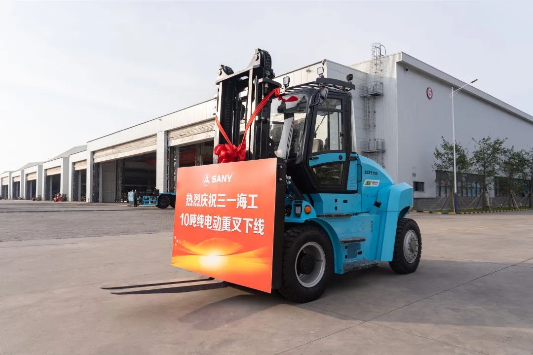 近日,三一10T纯电动重叉SCPE100在三一珠海产业园正式下线。