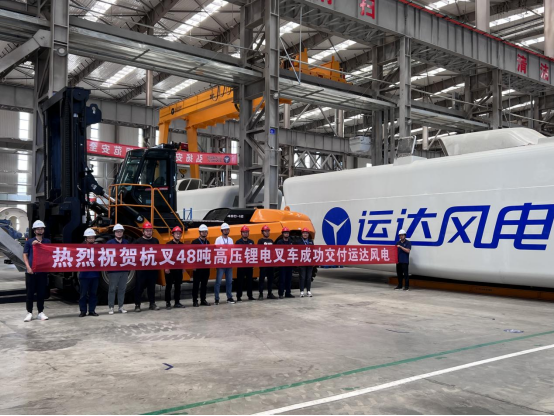 运达风电是国内较早从事大型风力发电机组研究与制造的企业,是中国风电发展史的拓荒者和创新者、全国新能源行业领军企业,走在新能源装备制造的前列,拥有全球四大研发中心、七大生产基地。各个生产基地现已分布着杭叉集团生产的10-40吨重型叉车十余台,电动叉车、电动搬运车、高空作业平台几十台。本次运达风电北方总部48吨叉车采购项目,经过市场调研及制造基地产品考察,杭叉48吨高压锂电叉车以无污染、高续航、快充电、高效率、重工况、低使用维护成本等特点得到了一致好评,双方最终达成合作,积极响应国家节能减排方针政策,推动新能源制造发展,打造以新能源和碳排放管理为主的现代化新能源产品制造企业。