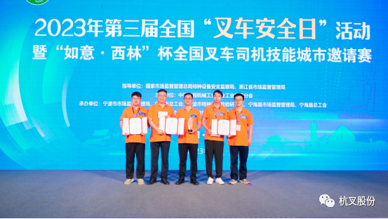 经过两天的激烈角逐,最终选拔出团体一二三等奖和个人名次。杭叉集团股份有限公司选手洪元斌、柴建中和谢永康三名选手代表杭州市参赛,经过顽强拼搏,最终取得团体奖二等奖、洪元斌和柴建中获得个人奖优胜奖的好成绩。充分展示了我市特种设备作业人员技能水平和能力素质,也为从业人员搭建了学技术、练技能、提本领的有效平台,为建设高素质、高技能的人才队伍奠定了良好基础,为高质量发展建设提供有力人才支撑。