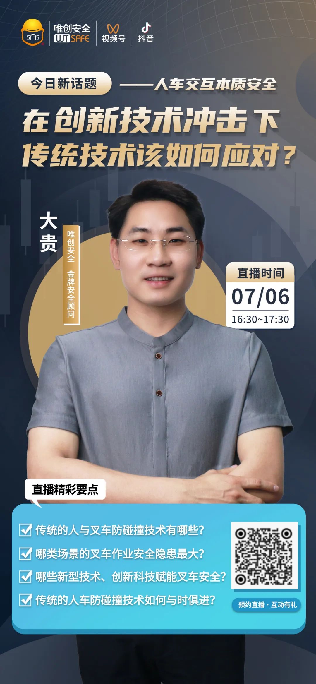 解决叉车安全隐患,找唯创安全就对了!针对厂区人车交叉作业频繁可能会引发人车、车车相撞的安全隐患,唯创安全有多种叉车防撞解决方案。本周四下午4点半,唯创安全直播间准时开播,由金牌安全顾问-大贵老师为我们分享在叉车安全领域,有哪些人车防碰撞技术,及这些技术如何与时俱进,赋能厂区叉车安全。快来预约直播啦!