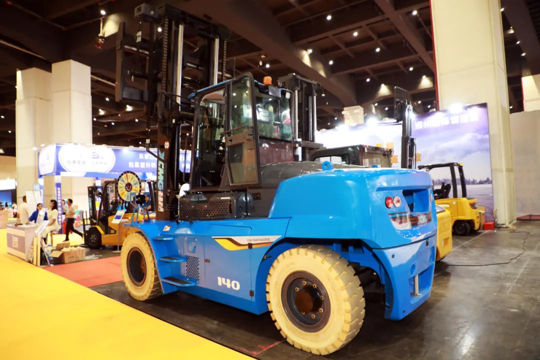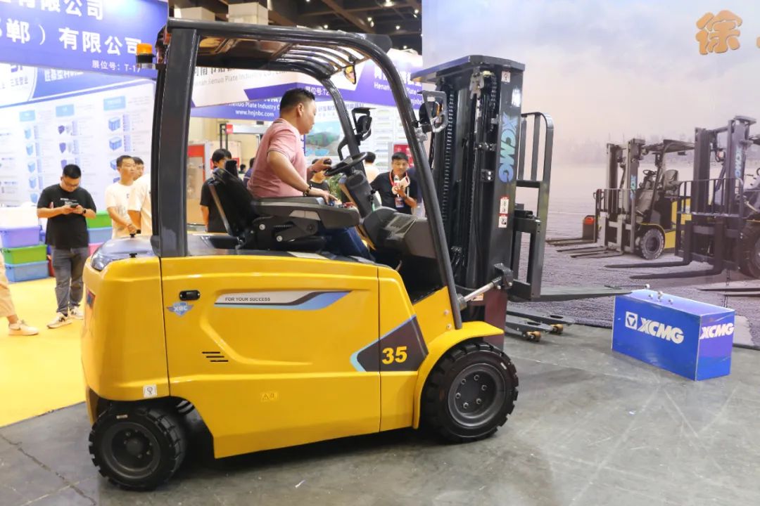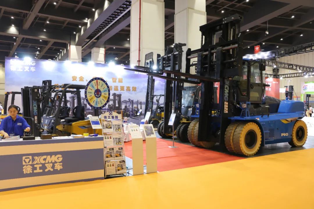 徐工鲲鹏全系列电动叉车、超大吨位电动叉车、仓储叉车等系列化电动产品精彩亮相,向行业客户全面展示在绿色搬运领域的实力。