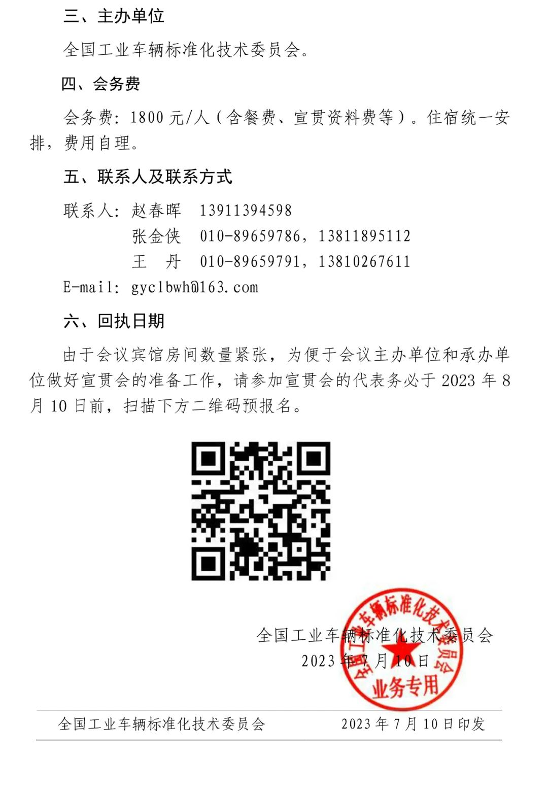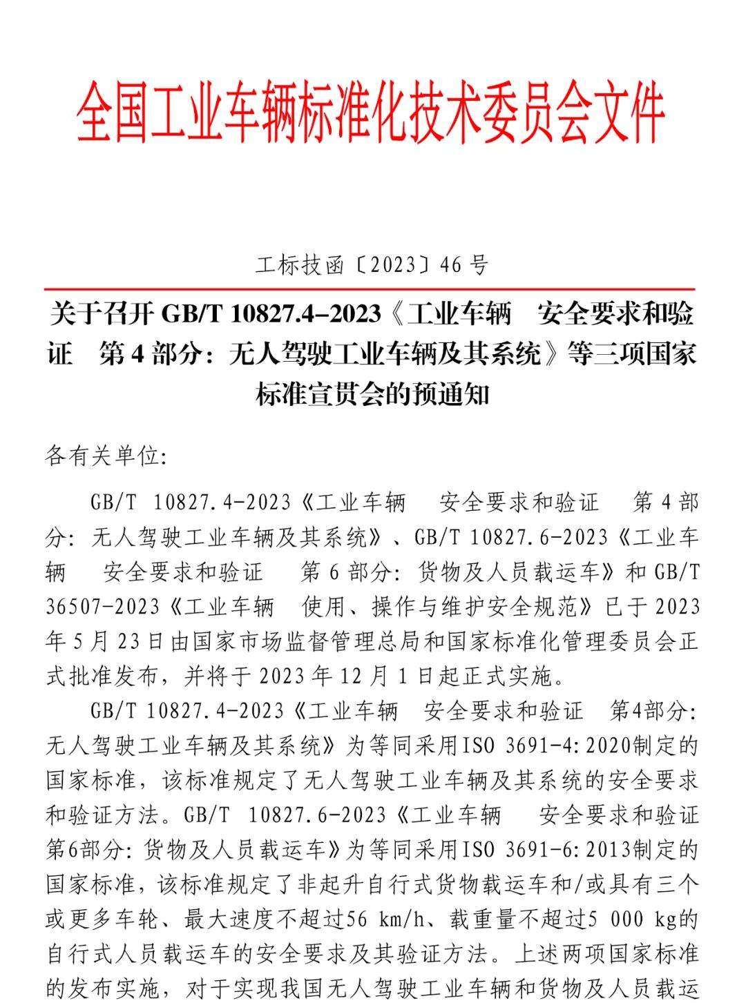关于召开GB/T 10827.4-2023《工业车辆 安全要求和验证 第4部分:无人驾驶工业车辆及其系统》等标准宣贯会的预通知