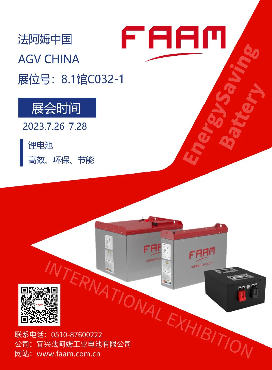 7月26~28日, FAAM中国将参加上海国际AGV小车与智能仓储展览会(AGV CHINA), 这是目前中国最具影响力和专业性的AGV小车展览会。