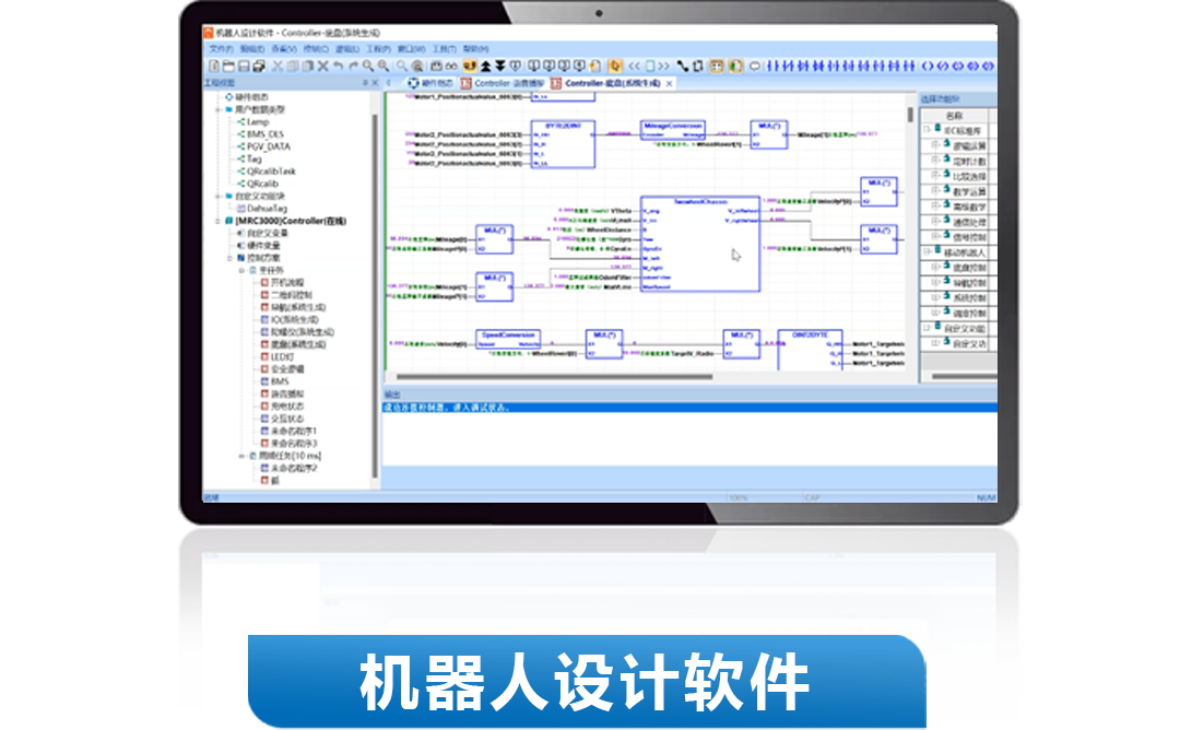 核心硬件产品 CORE HARDWARE PRODUCTS 实力软件产品 STRENGTH SOFTWARE PRODUCTS 将各类功能封装成图形化功能块,符合IEC 61131-3标准,快速实现车辆功能。 提供完善的地图管理功能,规划机器人行驶路线,配置机器人所要完成的任务。 采用多种调度算法实现任务的最优分配、多机器人路径规划以及交通管理,实现高效协同作业。