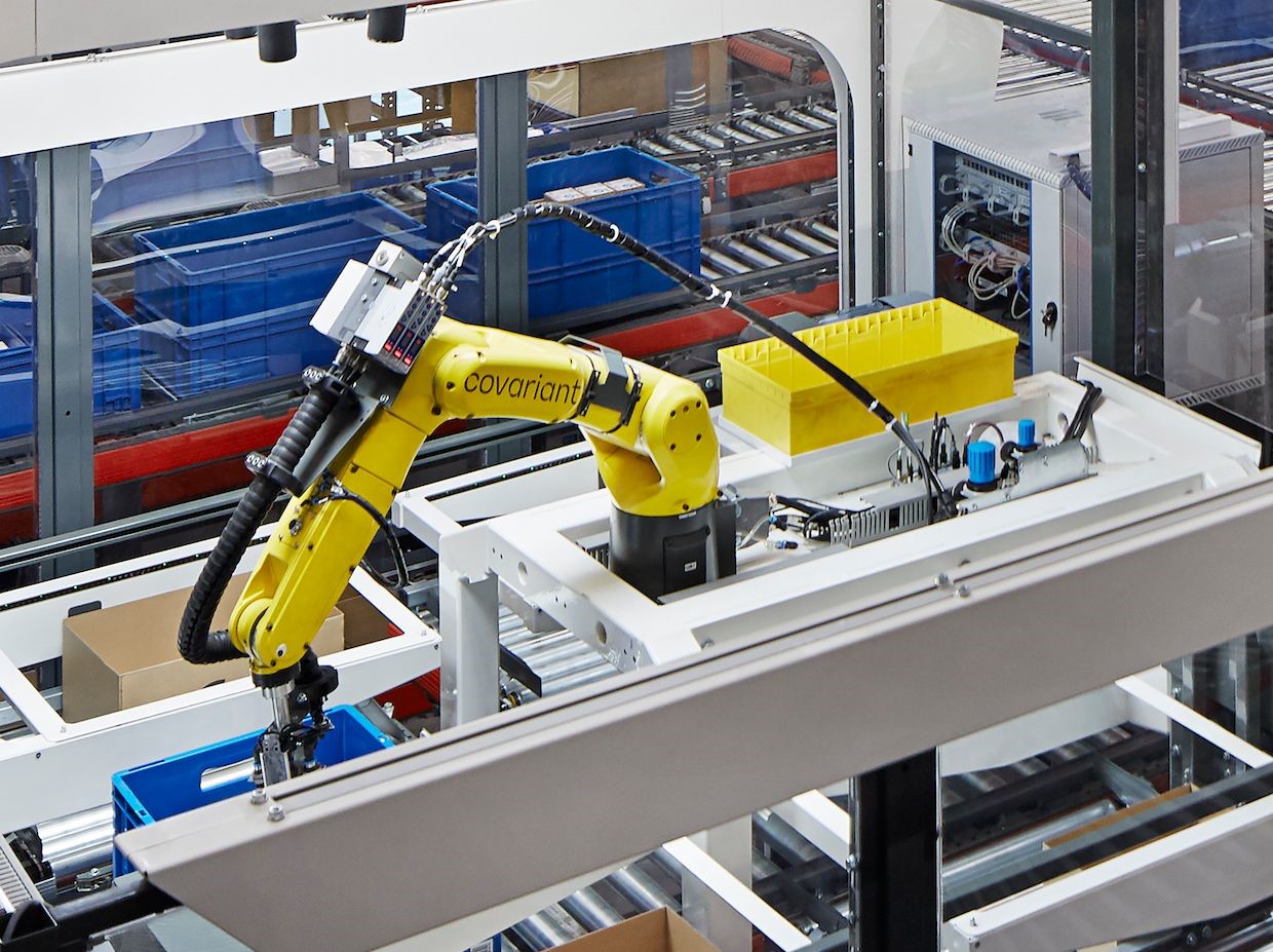Covariant提供机器人分拣墙,最近宣布电子商务履行服务公司Radial部署了12个U形分拣墙,将混合SKU手提袋中的商品分类到订单柜中。