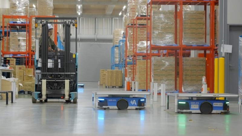 该中心处理货物的区域范围很广,水平方向200m,垂直方向70m,大量时间都用叉车运输。通过用AMR取代这种运输,在不改变现有布局的情况下实现了自动化。
