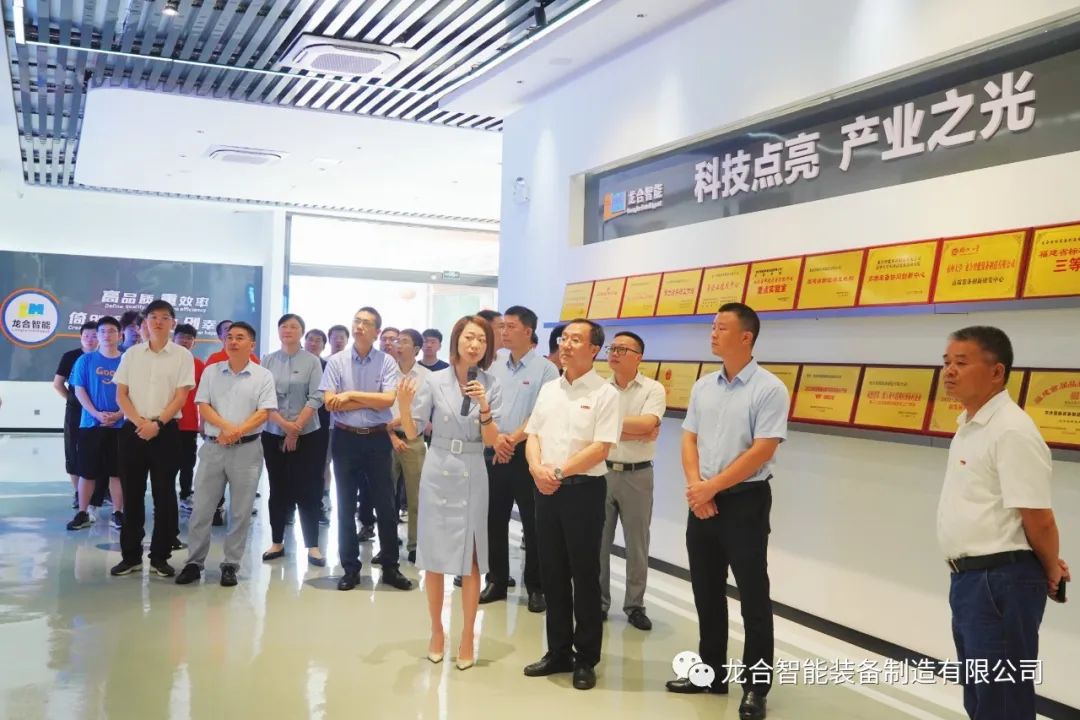 活动过程中,福州大学副校长林键等一行参观了龙合智能数字化展厅及生产车间,详细了解我司生产经营、科研攻关、产业布局以及5G+智慧工厂项目建设等情况。