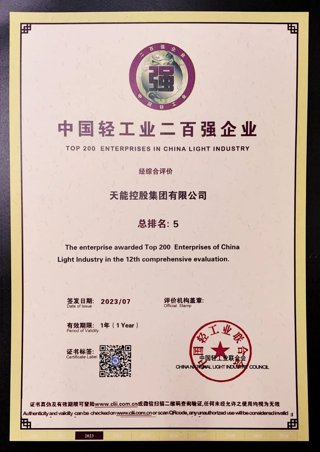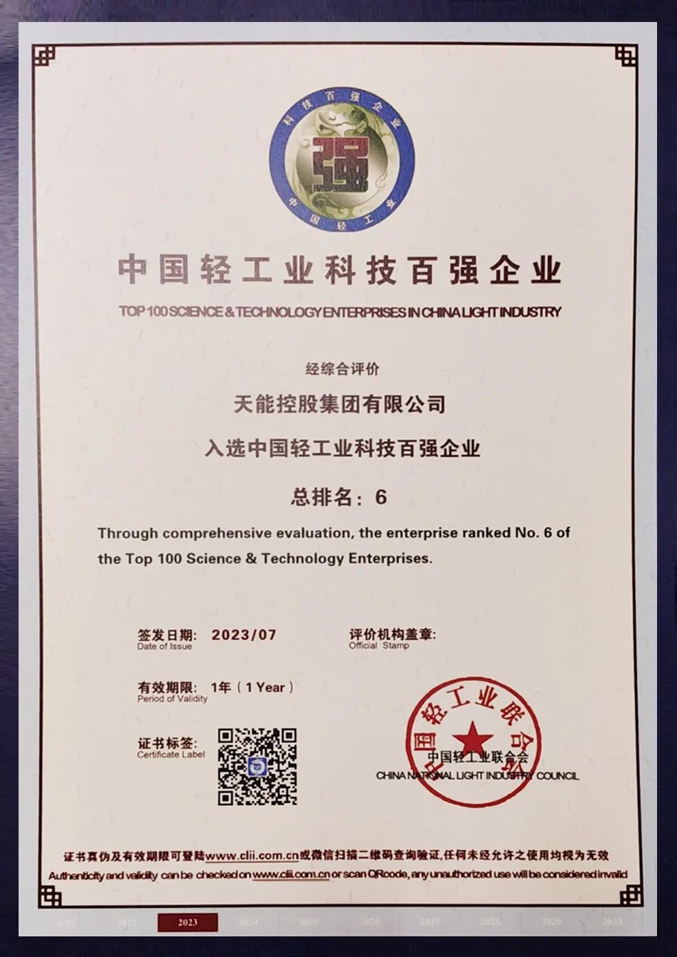 近日,中国轻工业联合会发布了轻工业百强企业榜单,天能在中国轻工业二百强企业榜单中位居第5位,中国轻工业科技百强企业位居第6位,均位列行业第一。