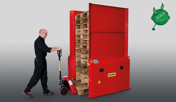 PALOMAT® Greenline是一款能提高效率,减少手动劳动并有助于提升工作场所安全性的高效托盘堆叠机。它的工作原理如下: