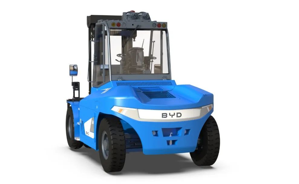 那最后,则要说到比亚迪锂电叉车引以为豪的外观与颜色设计,简洁大气的车型设计、天空蓝的洁净透彻让人第一眼看上去便会产生干练之感,即使如12-16T平衡重式叉车的“巨型猛兽”看上去也是十分清爽。试想当仓储物流内部都是比亚迪锂电叉车在往复行驶,仅从视觉观感上,也会让暑意褪去几分。