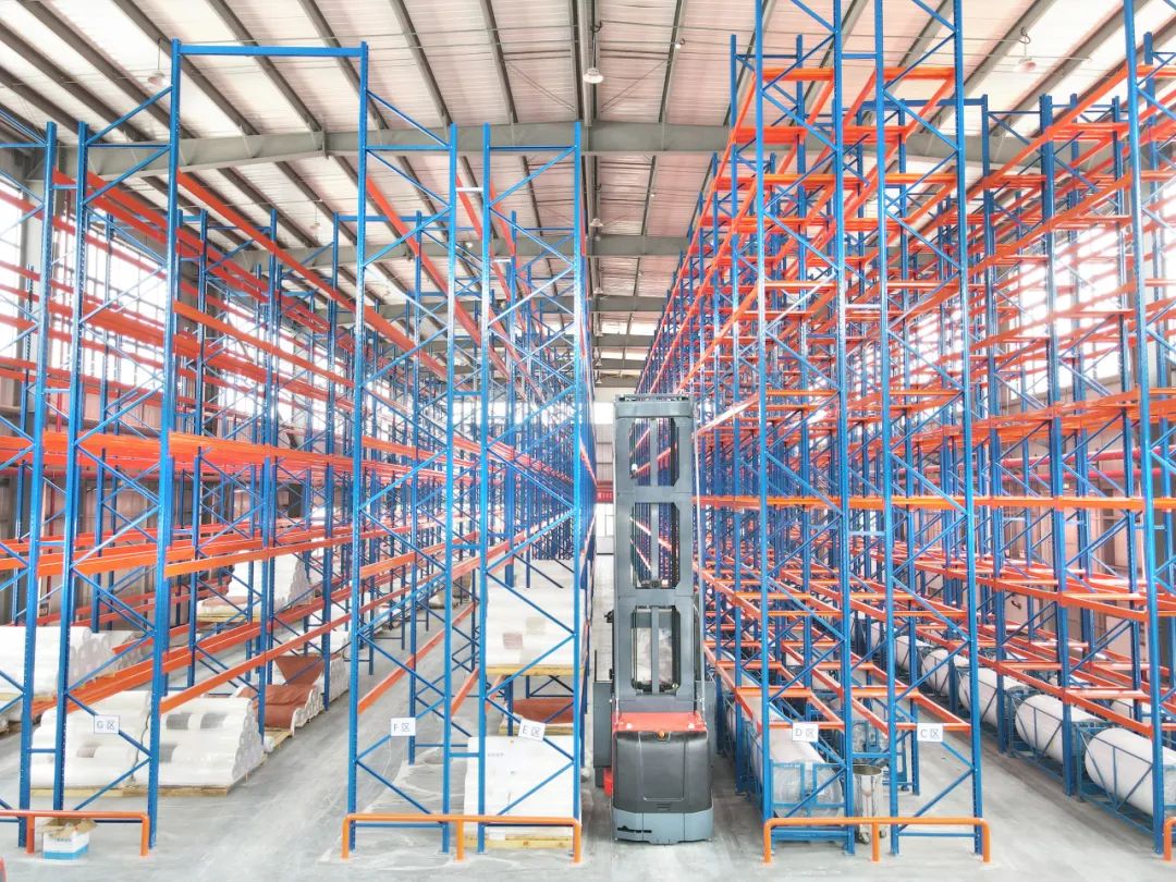 1、将原有常规型货架改为超窄巷道高位货架,货架高度可达10米,堆垛净通道仅为1.65米,增加更多托盘位,较原仓库库容量提升150%;
