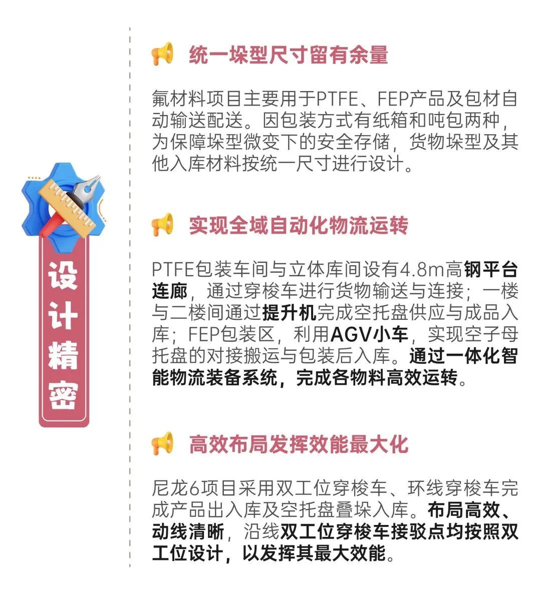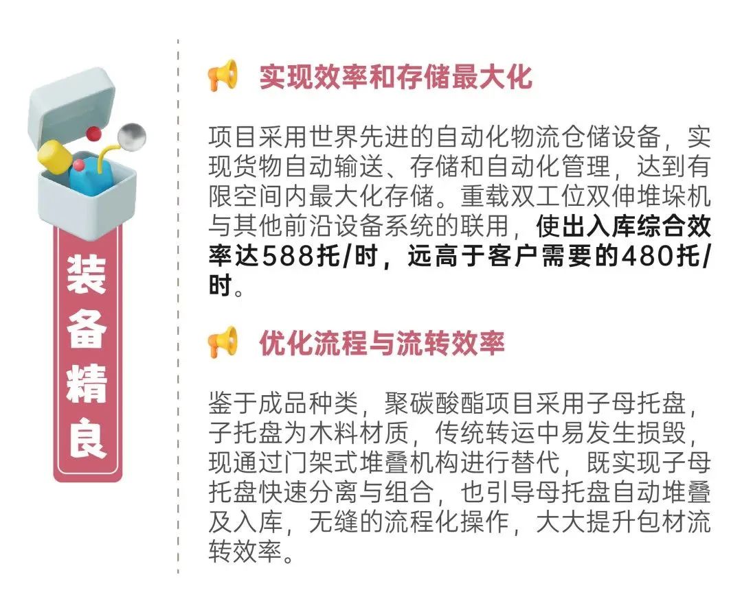 为解决老厂房地堆库容不足、前后端生产自动化水平不一、场内物流受限产能效率滞后的问题,该企业于2019年首次牵手井松智能,成功打造了聚碳酸酯智能工厂。
