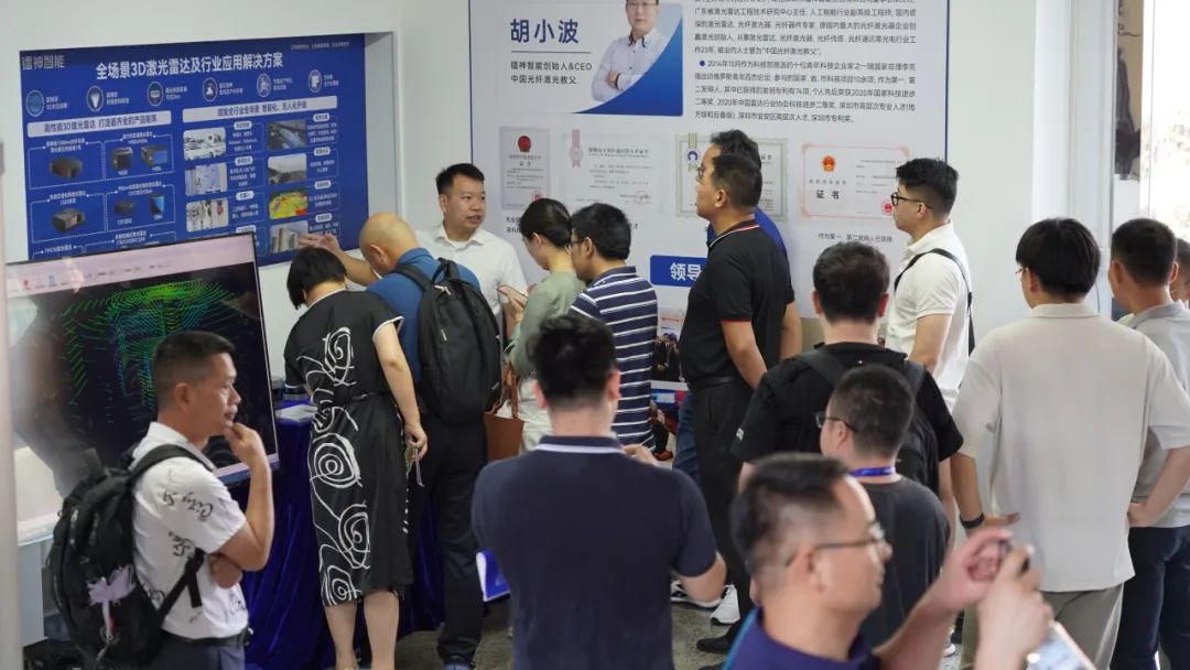 深圳市人工智能产业协会秘书长杨诗虹,深圳市人工智能产业协会副主席马清,深圳市镭神智能系统有限公司董事长胡小波,深圳市镭神智能系统有限公司系统事业部副总经理王婉婉,与荣能源科技(深圳)有限公司总经理陈龙冬,跨维(深圳)智能数字科技有限公司销售总监蔡文祥,深圳市盛格纳电子有限公司销售总监刘梨明,以及深圳市人工智能产业协会会员和新企业等50余人参加了此次会议。