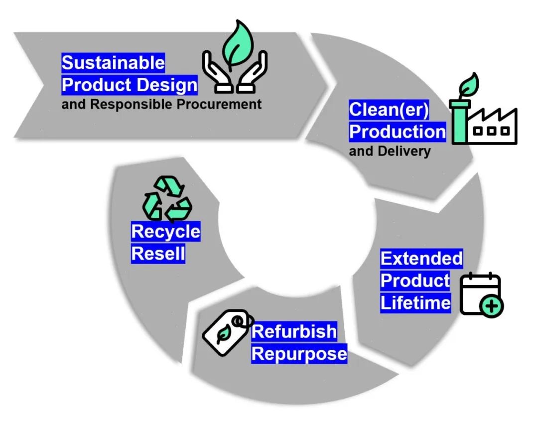 循环经济是一种超越产品或材料初始生命周期终点的思维方式。它始于可持续的产品设计、可持续的生产和交付,以及通过替代使用模式延长产品的使用寿命。循环经济也不止于此。其目标是从线性生产转变为不浪费资源的循环过程。产品和材料应尽可能长时间地使用,然后在其生命周期结束时进行再加工和可持续回收,从而为未来的生产工艺创造新的材料。