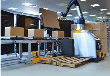 协作机器人执行码垛应用。(图片来源:斗山机器人)